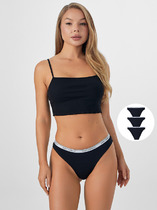 Трусы женские TANGA с низкой посадкой из однотонного трикотажного полотна. Талия обработана эластичной тесьмой плоским швом. Ножки обработаны узкой эластичной тесьмой плоским швом. Ластовица двойная отрезная спереди и сзади.