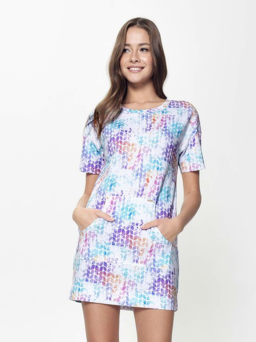 Эластичная хлопковая туника с большим функциональным карманом спереди - must have в гардеробе современной девушки. Вы оцените трендовый стиль "оversize", приятный к телу хлопковый трикотаж и свободную посадку. Туника мягко облегает силуэт, не сковывает движений и при этом идеально смотрится на любой фигуре. Яркий принт нанесенный методом цифровой печати устойчив к многочисленным стиркам и прекрасно сохраняет яркость цвета.