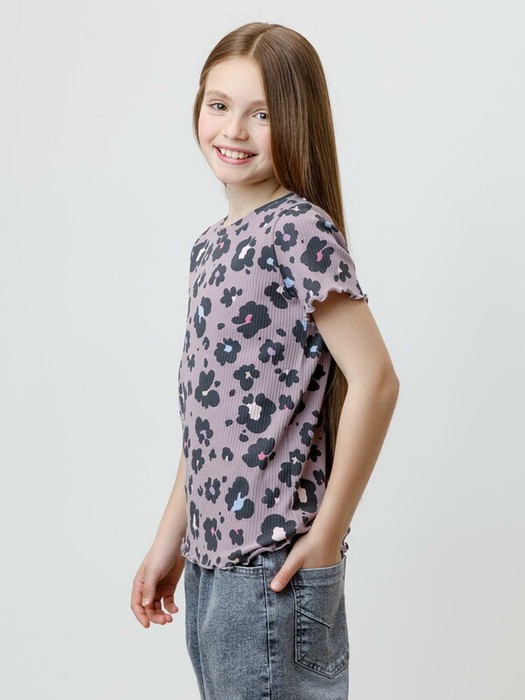 Футболка из эластичного трикотажа в рубчик для девочки. Оригинальный рисунок выполнен из стойких текстильных гипоаллергенных красителей. Изделие сохраняет цвет и форму после многократных стирок. Все трикотажные полотна производятся в соответствии с нормами швейцарского сертификата ЭкоТекс.