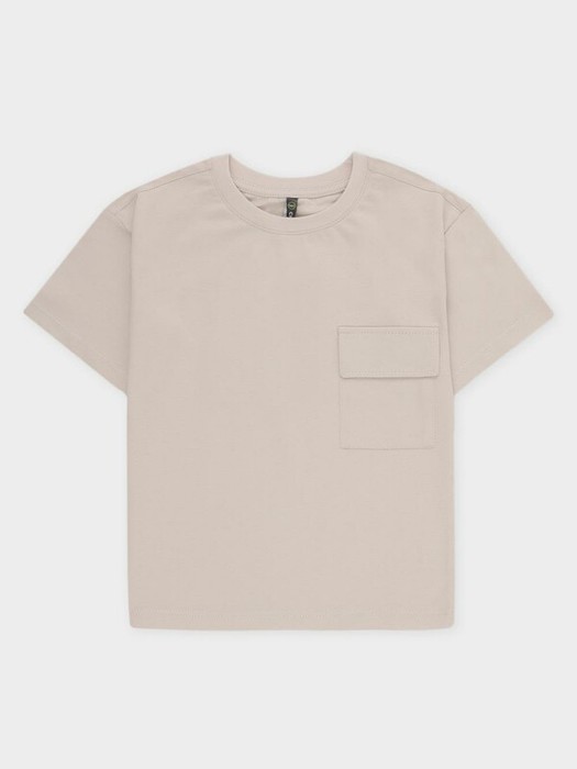 Однотонная футболка для мальчика из высококачественного трикотажного полотна. Спереди карман с клапаном. Для удобства в размерах 92-98 имеется застежка на спинке на кнопки.