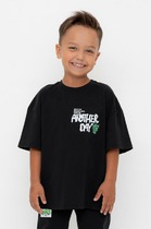 Футболка для мальчика из высококачественного трикотажного полотна. Оригинальный принт выполнен из стойких текстильных гипоаллергенных красителей. Для удобства в размерах 92 и 98 на спинке есть застежка на кнопки.