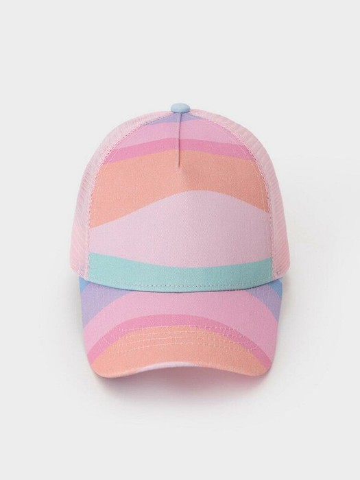 Кепка для девочки из текстиля и сетки. Оригинальная набивка выполнена из стойких гипоаллергенных текстильных красителей. Регулируется по ширине головы и фиксируется на затылке с помощью пластиковой застёжки.