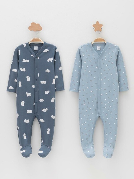 Комбинезоны для новорождённых из мягкого эластичного трикотажа интерлок, произведённого из натурального хлопка. В упаковке 2 штуки. Застёгиваются спереди на кнопки. В размере 56 на рукавах предусмотрены антицарапки, швы выполнены наружу. Оригинальная набивка выполнена из стойких гипоаллергенных текстильных красителей. Все трикотажные полотна производятся в соответствии с нормами швейцарского сертификата ЭкоТекс.