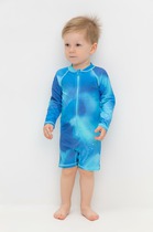 Купальник для мальчика. Застегивается спереди на замок. На замке предусмотрена защита для подбородка. На груди и спинке принт. Оригинальный принт выполнен из стойких гипоаллергенных красителей.
