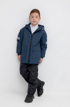 Ветровка для мальчика из мембранной ткани с дополнительной тефлоновой обработкой. Данный вид обработки предохраняет изделие от загрязнения и лучше отводит влагу. Подклад из 100% полиэстера. У изделия предусмотрена защита подбородка. Несъемный капюшон регулируется с помощью эластичного шнура со стопперами. Низ рукавов имеет эластичную резинку для лучшего прилегания. Боковые карманы на молнии. Во всех изделиях верхнего ассортимента для безопасности ребенка предусмотрены светоотражающие элементы.