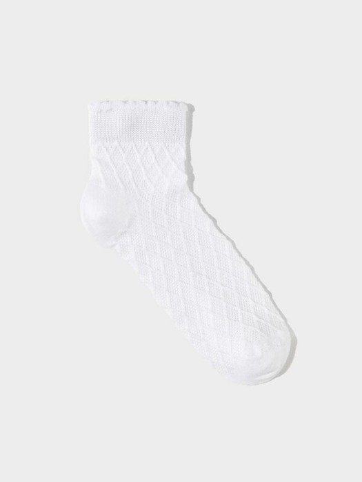 Носки короткие для девочки с формованной пяткой и эластичной резинкой по краю. Связаны ажурным геометрическим узором.