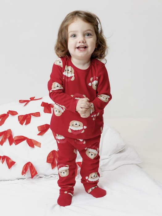 Трикотажная пижама из натурального хлопка.  Джемпер с длинными втачными рукавами и брюки с эластичной резинкой в поясе. Отлично подойдёт для создания праздничных образов или в качестве подарка малышу на Новый год и Рождество. Джемпер застёгивается на кнопки. По низу брюк мягкие манжеты. Оригинальная набивка выполнена из стойких текстильных гипоаллергенных красителей. Изделие сохраняет цвет и форму после многократных стирок. Все трикотажные полотна производятся в соответствии с нормами швейцарского сертификата ЭкоТекс.