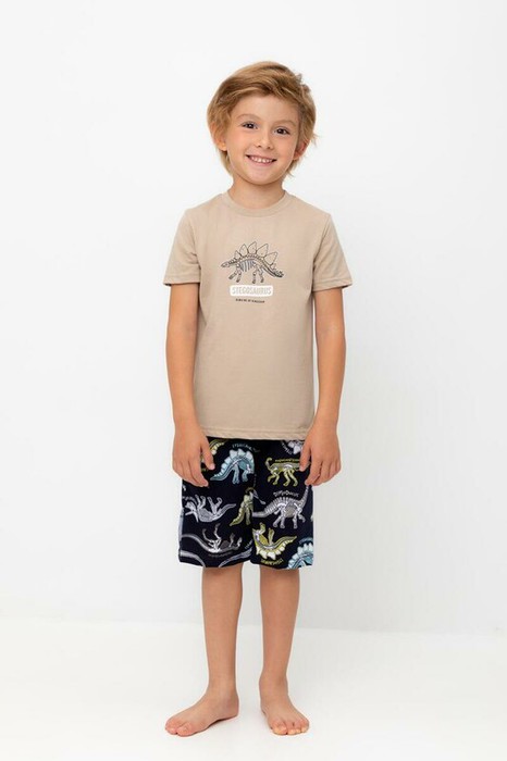 Crockid пижама дет К 1528/темно-бежевый,цветные динозавры