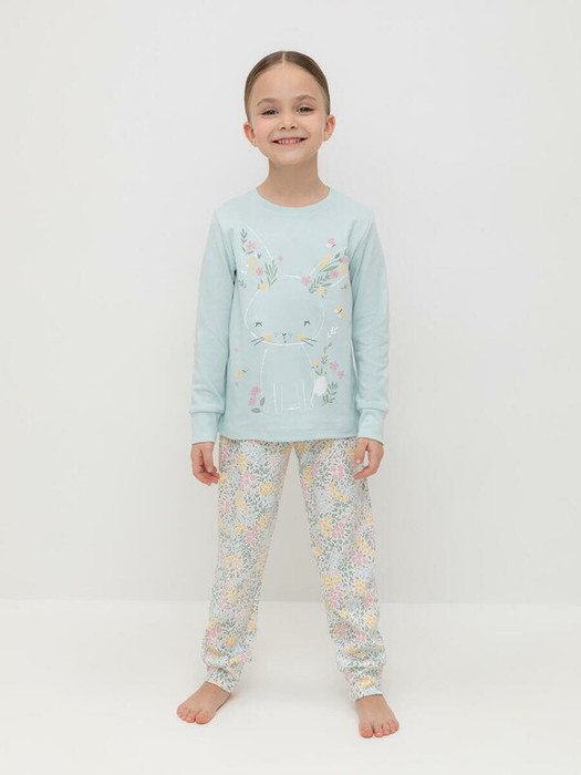 Трикотажная пижама из натурального хлопка. Джемпер с длинными втачными рукавами и брюки с эластичной резинкой в поясе. Мягкие манжеты на рукавах и по низу брюк. Оригинальная набивка и принт выполнены из стойких текстильных гипоаллергенных красителей. Изделие сохраняет цвет и форму после многократных стирок. Все трикотажные полотна производятся в соответсвии с нормами швейцарского сертификата ЭкоТекс.