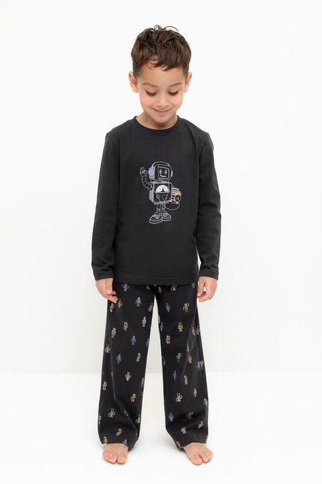 Crockid пижама дет К 1600/угольный серый,цветные роботы