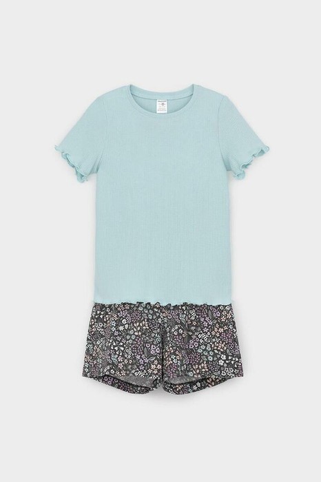 Трикотажная пижама из натурального хлопка. Футболка с короткими втачными рукавами изготовлена из эластичного трикотажа в рубчик. Шорты с эластичной резинкой в поясе выполнены из гладкого трикотажа супрем. Оригинальная набивка выполнена из стойких текстильных гипоаллергенных красителей. Изделие сохраняет цвет и форму после многократных стирок. Все трикотажные полотна производятся в соответсвии с нормами швейцарского сертификата ЭкоТекс.