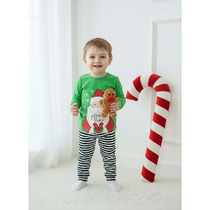 Трикотажная пижама в рубчик из натурального хлопка. Джемпер с длинными втачными рукавами и лосины с эластичной резинкой в поясе. Оригинальная набивка выполнена из стойких текстильных гипоаллергенных красителей. Изделие сохраняет цвет и форму после многократных стирок. Все трикотажные полотна производятся в соответствии с нормами швейцарского сертификата ЭкоТекс.