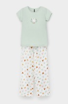 Трикотажная пижама для девочки с футболкой и велосипедками. Удлинённая футболка изготовлена из гладкого трикотажа супрем. Велосипедки выполнены из эластичного трикотажа в рубчик. Оригинальная набивка и принт выполнены из стойких текстильных гипоаллергенных красителей. Изделие сохраняет цвет и форму после многократных стирок. Все трикотажные полотна производятся в соответсвии с нормами швейцарского сертификата ЭкоТекс.