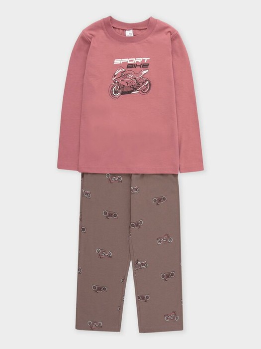 Пижама для мальчика из натурального хлопка. Джемпер с длинными втачными рукавами и прямые брюки с эластичной резинкой в поясе. Оригинальная набивка и принт выполнены из стойких текстильных гипоаллергенных красителей. Изделие сохраняет цвет и форму после многократных стирок. Все трикотажные полотна производятся в соответствии с нормами швейцарского сертификата ЭкоТекс.
