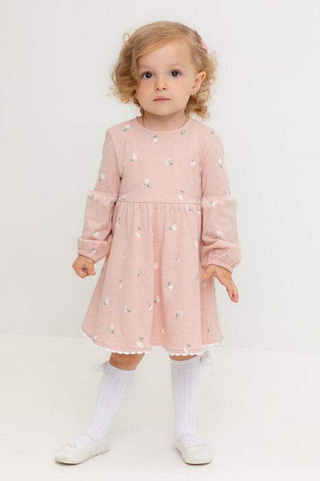 Платье для девочки с длинными рукавами из высококачественного трикотажа супрем. Для удобства одевания платье застёгивается на пуговицу на спинке. Низ изделия украшен кружевом. Платье сохраняет форму и стойкий цвет после многочисленных стирок и идеально подходит на каждый день.