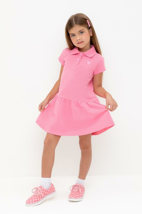 Платье для девочки из высококачественного трикотажа пике с вязаным воротничком. Для удобства одевания платье застёгивается на кнопки спереди. Платье сохраняет форму и стойкий цвет после многочисленных стирок и идеально подходит на каждый день.