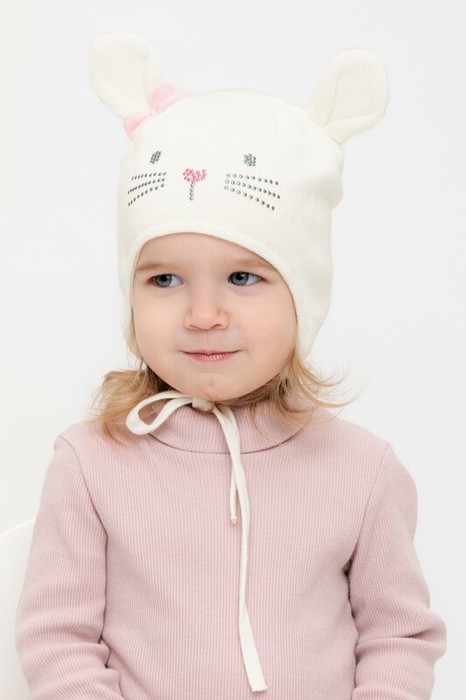 Демисезонная шапка для девочки с декоративными ушками из смесовой пряжи с добавлением высококачественного гребенного хлопка. Мягкий хлопковый подклад из трикотажного полотна интерлок. Комфортное прилегание, высококачественные материалы обеспечивают защиту от холода и хороший теплообмен. Декоративные элементы в виде страз надежно зафиксированы на изделии что позволяет выдерживать многократные стирки.
