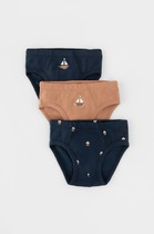 Комплект трикотажных трусов, произведённых из натурального хлопка. Оригинальная набивка выполнена из стойких, гипоаллергенных текстильных красителей. Сохраняют цвет и форму после многократных стирок. Все трикотажные полотна производятся в соответсвии с нормами Швейцарского сертификата ЭкоТекс.