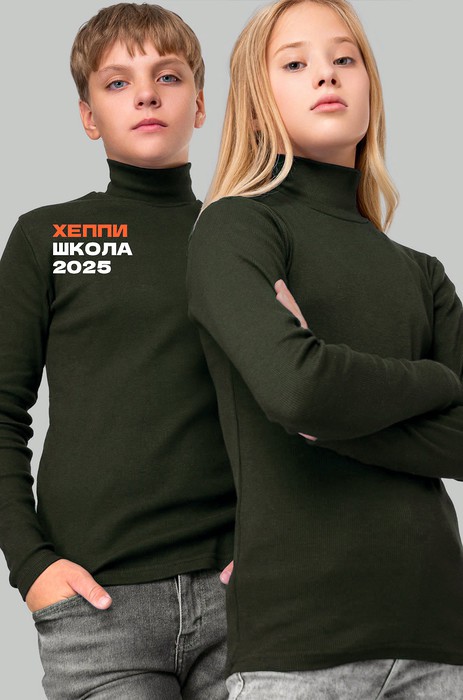 Школьная водолазка в рубчик для детей и подростков выполнена из хлопкового трикотажа лапша.