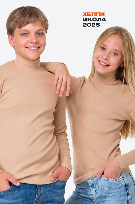 Школьная водолазка в рубчик для детей и подростков выполнена из хлопкового трикотажа лапша.
