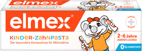 Детская зубная паста elmex создана для особой защиты молочных зубов от кариеса. Она содержит уникальный фторид амина, обеспечивающий тройной механизм защиты: зубная паста образует верхний слой фторида кальция на зубной эмали и делает зубы более устойчивыми к разрушению минералов, вызванному кариесом. Зубная паста не содержит диоксида титана.