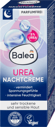 Ночной крем Balea Urea с 5% мочевины обеспечивает коже оптимальное увлажнение. Богатая формула не содержит отдушек и специально разработана с учетом потребностей очень сухой, напряженной и чувствительной кожи. Для приятного ощущения свежести кожи и ухоженного цвета лица по утрам. Формула ухода с мочевиной прекрасно связывает воду и обеспечивает интенсивное увлажнение. Высококачественное масло ши и отборное оливковое масло интенсивно увлажняют и нежно питают кожу. Предотвращаются покраснения кожи и чувство напряжения. Витамин Е обеспечивает ощущение успокоения кожи и поддерживает ее собственную регенерацию в ночное время.