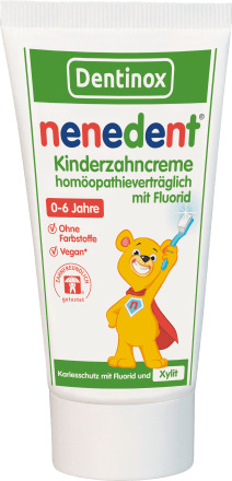 Зубная паста Дентинокс подходит от рождения до шести лет и совместима с гомеопатией. Детская зубная паста также содержит фтор и обеспечивает дополнительную защиту от кариеса. Благодаря мягкому яблочному вкусу уборка становится намного проще и приятнее.