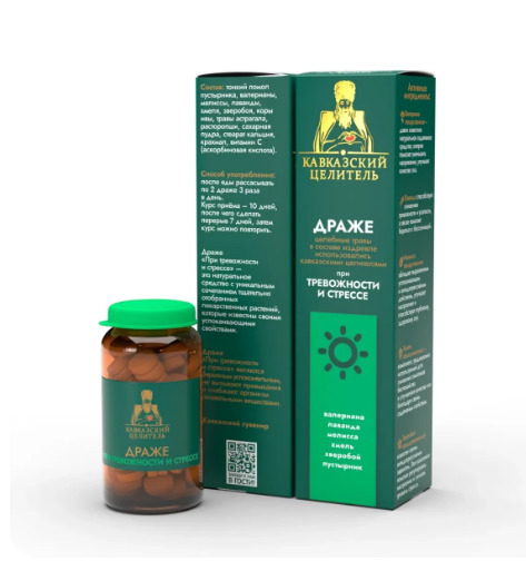 Совместные закупки Екатеринбург Товары для здоровья Добавки к пище, витамины — Драже «При тревожности и стрессе» стекло 25 г, «Кавказский Целитель»