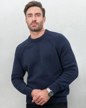 Мужской свитер прямого силуэта с округлой горловиной. По горловине, низу изделия и рукавов - резинка. Передняя полочка из фактурного трикотажа, рукава и спинка гладкие