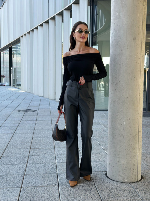 Джемпер выполнен из эластичного трикотажа средней плотности. Обработан воротником - хомкт, который можно спустить ниже плеч. Рукава прилегающего силуэта, обработаны манжнтой из основной ткани с вырезом для большого пальца.