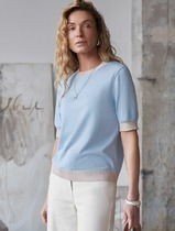 Джемпер трикотажный прямого силуэта со спущенной линией плеча и длинным рукавом. По переду отрезной бочек, в шов которого вставлен фастекс, благодаря чему у джемпера меняется силуэт и образуются дополнительные драпировки. По горловине притачная планка из основной ткани.