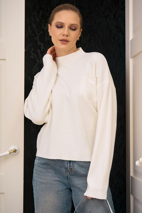 Манжеты и низ изделия выполнены в аккуратную резинку, чтобы пуловер долго сохранял форму.