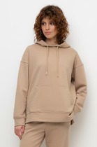 Джемпер выполнен из трикотажного полотна в полоску. Джемпер прямого силуэта, свободного покроя, длиной выше линии бедер. Перед и спинка цельные. Горловина переда и спинка формы "лодочка". Плечевой шов удлинен. Рукав одношовный широкий. Горловина обработана окантовкой из основной ткани.