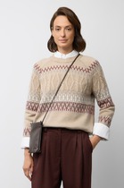 Джемпер "Веяна" — сияние мягкости. Легкая трикотажная ткань, украшенная люрексовой нитью, словно ловит свет и отражает его мягким блеском. Прямой силуэт с вытачками подчёркивает фигуру, а комфортная изнанка дарит ощущение нежности на коже. Финишные акценты — тонкая планка горловины и утончённая обработка низа — делают образ завершённым.