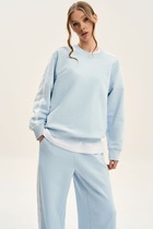 Нежный женский удлиненный свитшот, пошит из комфортной, всесезонной ткани. Свитшот имеет слегка расширенный к низу силуэт и разрезы в боковых швах. Бейка горловины, манжеты рукавов изготовлены из ткани-компаньена кошкорсе. Свитшот имеет рукава покроя реглан. По центру переда вышит логотип в цвет ткани.