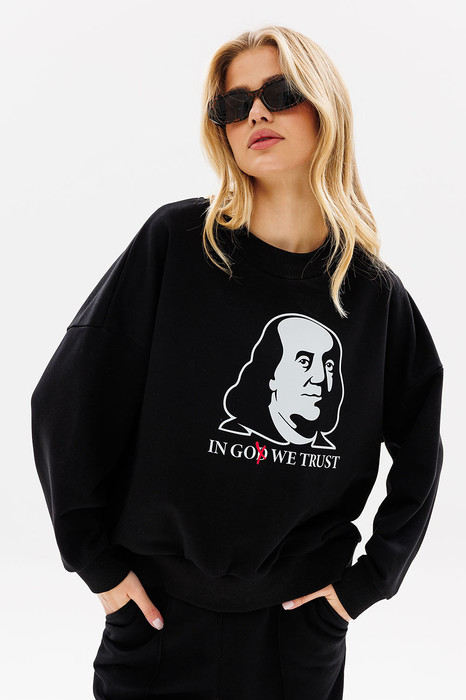 Вы не останетесь незамеченной в свитшоте с дизайнерской печатью “Бенджамин Франклин” от GO!