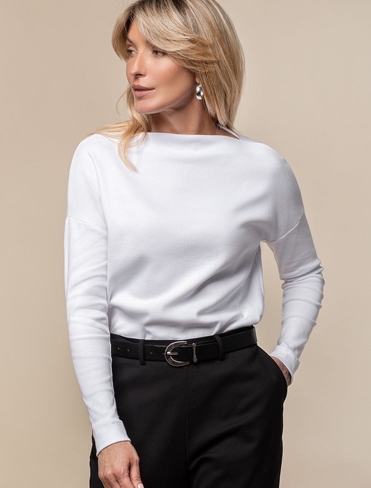 Состав: 95%Хлопок 5%ПУ Параметры модели на первом фото: Рост 170, бюст 89, талия 63, бедра 92Джемпер со спущенной линией плеча выполнен из фактурного трикотажа в рубчик. Модель идеально сидит по фигуре не сковывая движения. Хлопковый трикотаж поддерживает оптимальную температуру тела, поэтому в изделии будет комфортно в течении всего дня. Наличие эластана в составе гарантирует формоустойчивости. Базовая модель впишется в любой гардероб.