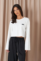 Укороченный джемпер прямого силуэта из трикотажного полотна. Горловина округлая. Рукав со спущенной линией плеча, по низу резинка. По низу джемпера резинка.