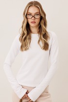 Джемпер женский, трикотажный, полуприлегающего силуэта. Горловина обработана стойкой из хлопчатобумажной ткани. Вырез горловины обработан притачной бейкой. Рукав втачной, 3/4. Ассиметричная линия низа.