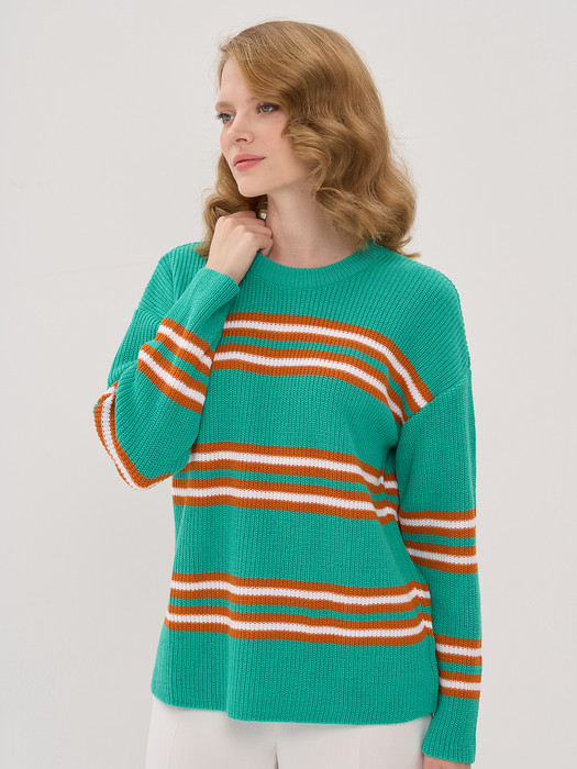 Джемпер NewVay 7242-40308 деликатный зелёный/абрикосовый пунш/белый