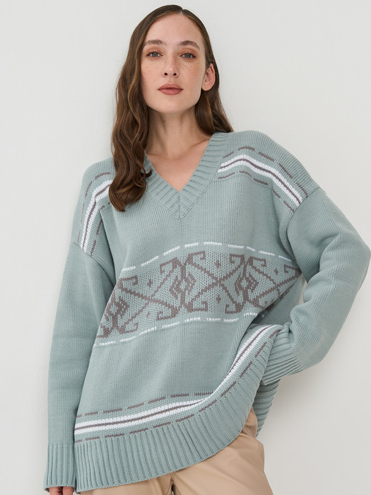 Джемпер NewVay 9242-94178 тополь серебристый/титаниум/белый