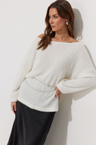 Джемпер из трикотажного полотна свободного кроя с имитацией рубашки. Вырез горловины полукруглый, линия плеча приспущена. Рукава комбинированные, на манжете.