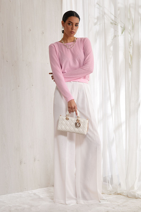 Джемпер выполнен из тонкого кружевного вискозного полотна.