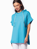 Свитшот из плотного премиального трикотажного полотна (интерлок). Изделие прямое. Горловина круглая с притачной планкой из отделочной ткани. Рукав спущенный, длинный, объемный. Низ рукава на манжете из отделочной ткани. Низ изделия на планке из отделочной ткани. Перед и спинка изделия прямые. На передней половинке свитшота авторская печать.