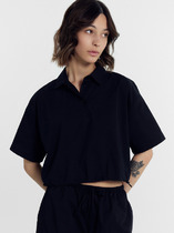 Детали: поло прямого силуэта, спущенная линия плеча, потайная застежка на петли и пуговицы, длинные рукава воротник контрастного цвета из текстильной хлопковой ткани.