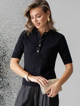 22.03 Vilatte Джемпер поло с застежкой на пуговицы из хлопковой пряжи с пайетка