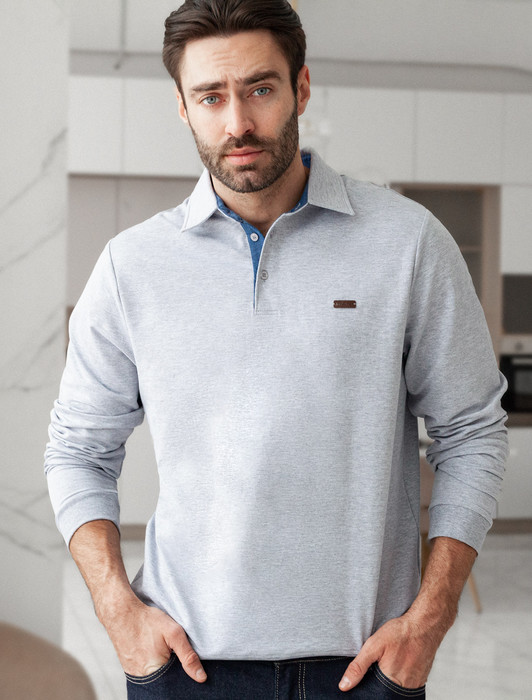 Совместные закупки Екатеринбург Мужская одежда Футболки — Джемпер-поло из эластичного футера с застежкой на пуговицы