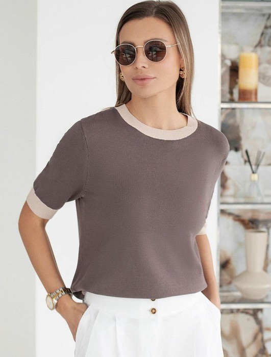 Легкий джемпер светло-розового цвета с круглым вырезом идеально подходит на весну и лето. Тонкая вязка из вискозы дарит приятный комфорт и ощущение свежести в теплую погоду. Полуприлегающий крой подчеркивает силуэт, а универсальная длина позволяет сочетать джемпер с разными элементами гардероба. Контрастная отделка с мягким люрексом добавляет стильный акцент, создавая выразительный образ. Деликатное мерцание придает праздничное настроение, но не выглядит слишком ярко или вызывающе. Такой элемент украшения позволяет носить нарядный джемпер и на особых мероприятиях. Джемпер отлично смотрится на больших размерах благодаря продуманному крою и полуприлегающему фасону. Этот джемпер с коротким рукавом станет незаменимой частью гардероба в сезоны, когда хочется легкости и элегантности одновременно. Лаконичный дизайн обеспечивает простоту комбинирования с другими вещами и будет универсальной базой для создания разнообразных комплектов — от офисного до непринужденного городского стиля.