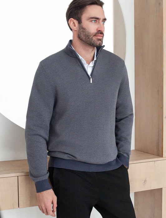 Состав: 55%Хлопок 45%ПАН (акрил)Серый джемпер с длинными рукавами выполнен из мягкой хлопковой пряжи с добавлением акрила. Высокий воротник застегивается молнией. За счет переплетения светлых и темных нитей получилась фактурная меланжевая модель, которая, отлично держит тепло и почти не ощущается на теле. Сочетается с футболками, денимом и с чиносами, любой обувью.