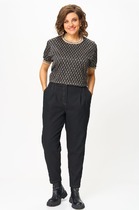 Джинсы мом с высокой посадкой - это идеальный выбор для женщин, ищущих комфорт и стиль в повседневной жизни, на работе. Брюки изготовлены из высококачественного смесового хлопка, обеспечивают идеальный баланс между удобством и прочностью. Модель с высокой посадкой, сзади с накладными карманами с отделкой и боковыми наклонными спереди. Вставки из экокожи с молниями по задним половинкам брюк внизу придают функциональности. Брюки на притачном поясе частично с резинкой.